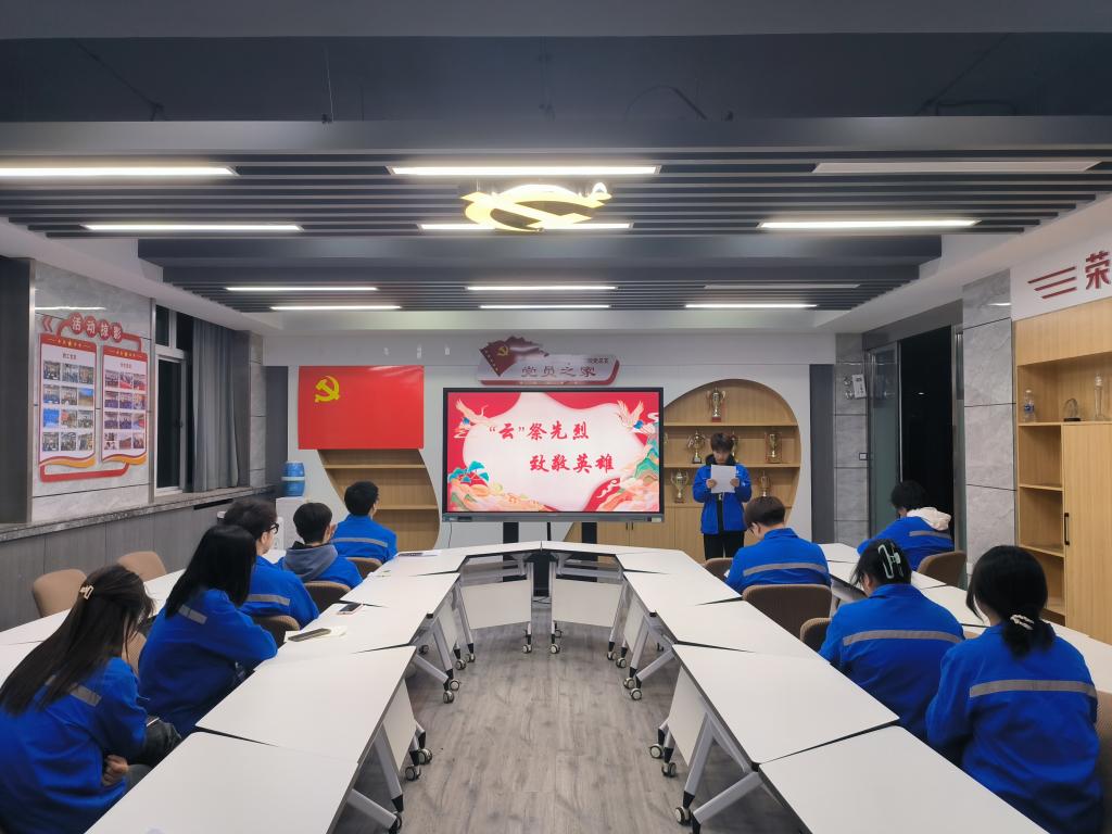 活动期间,公司组织全体员工利用中华英烈网、退役军人事务部门户网等网络平台开展云端祭拜活动,通过发表祭奠感言、云端献花、擦拭纪念碑,让员工接受线上“沉浸式”精神洗礼,缅怀革命先烈,弘扬英雄精神。随后,员工们在化工楼党员之家举办了革命诗词诵读环节,《囚歌》《我的自白书》《梅岭三章》《可爱的中国》等革命诗文被同学们激情诵读,慷慨激昂的声音回荡在党员之家,阵阵掌声中将活动推向了高潮,同学们再一次被革命先烈的大无畏精神和强烈的爱国主义情怀所感染,大家纷纷表示,这是一次有意义的清明祭祀活动,也让他们懂得了安宁平和的生活来之不易。